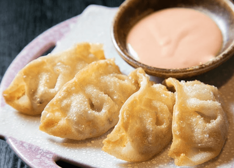 黒豚餃子のチリマヨソースは揚げ餃子をピリ辛のマヨソースにディップしていただきます♪
