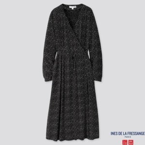 ユニクロ公式サイトで調べてみたところイネスコラボの「レーヨンプリントカシュクールワンピース(長袖)」でした。